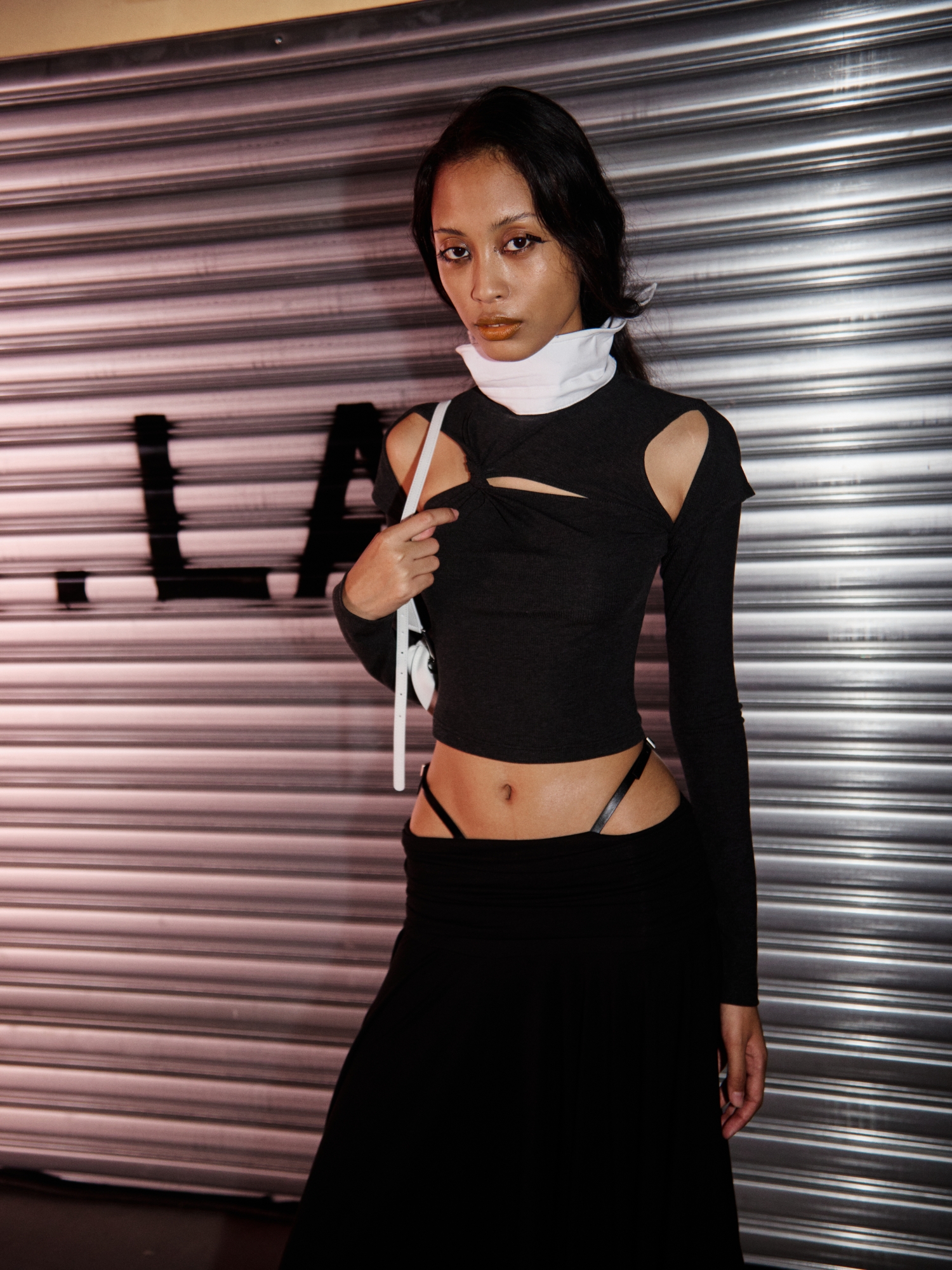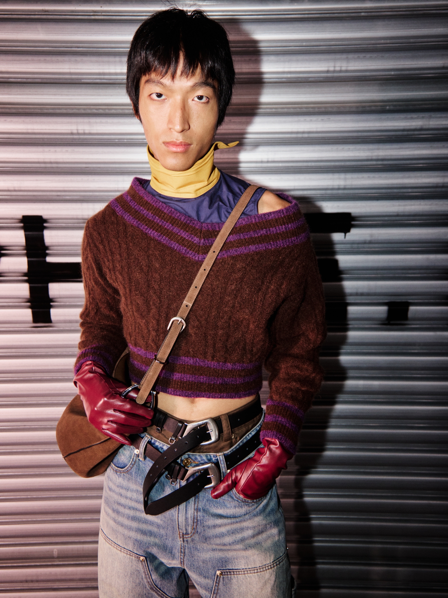 Built around the energy of motion and imperfection, the collection captures what it feels like to exist in constant change and movement. Fragmented silhouettes, uneven layering, and tactile fabrics mirror the friction of urban living, where speed often replaces stillness, and beauty emerges from imbalance.