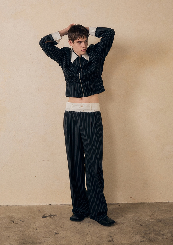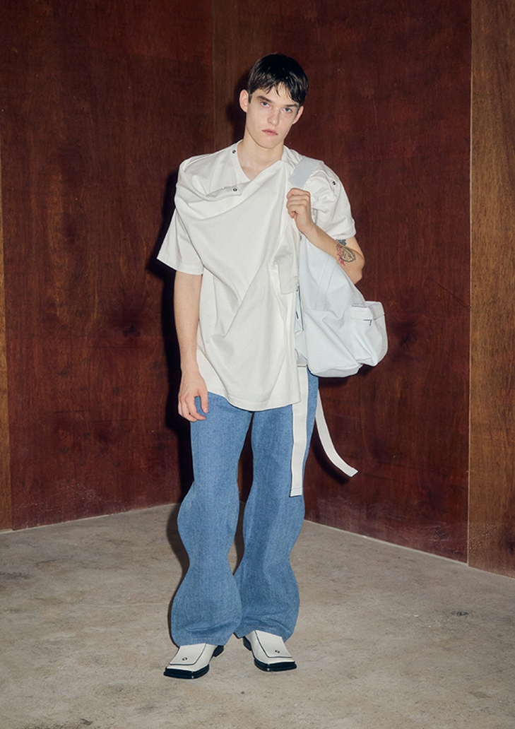 For Spring/Summer 2026, NEU_IN introduced a collection that connects emotion, memory, and design through garments. Inspired by the designer's school years, Seyong Kim explores how people and objects can connect, drift apart, and come back together, despite time, space, and changes. This idea can be seen in curves, folds, and seams, representing human changes, ups and downs.